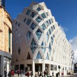 Ikonična i suptilna, fasada se pojavljuje kao trodimenzionalni beli veo, koji se ritmički odmotava duž cele zgrade.