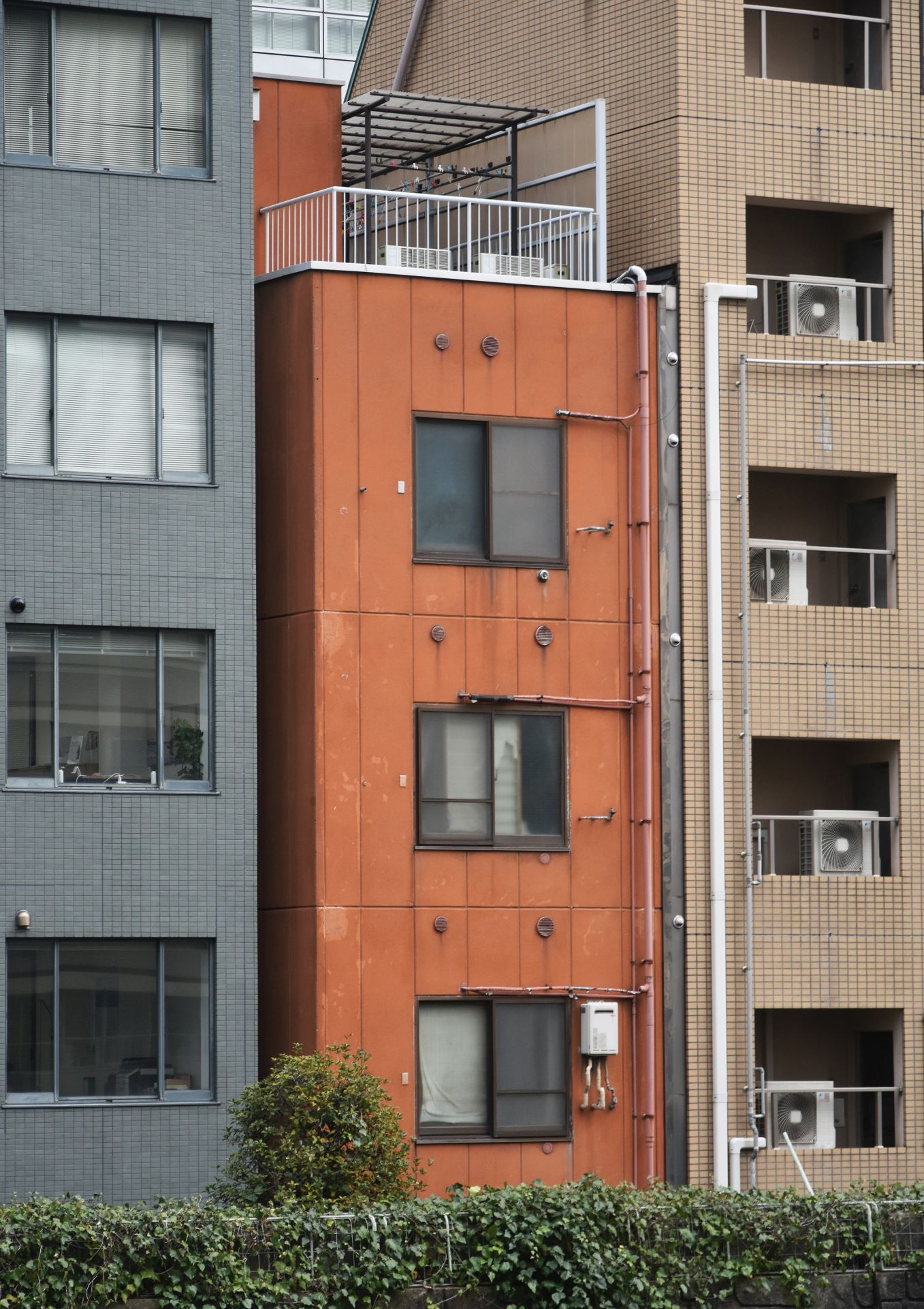 Pored poslovnih nebodera, koji su uglavnom poređani uz glavne saobraćajnice, dominiraju uske stambene zgrade u nizu, visoke u proseku od pet do deset spratova, sa komercijalnim sadržajem u prizemlju. Mimo hostela u kojem sam bila smeštena, nisam imala priliku da uđem ni u jedan japanski mikro-stan.