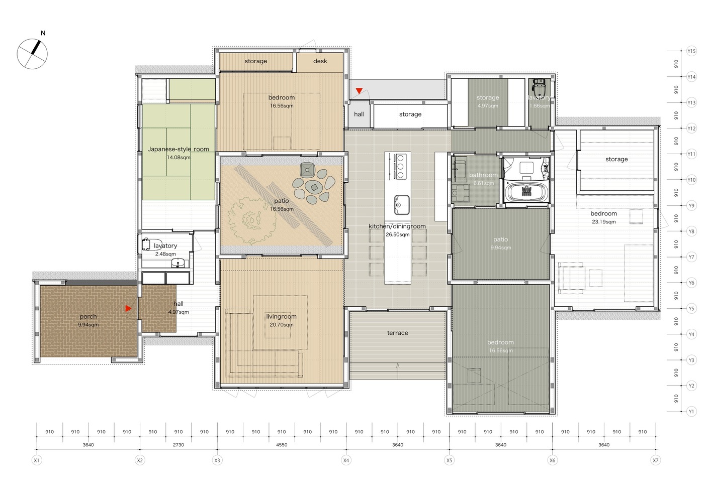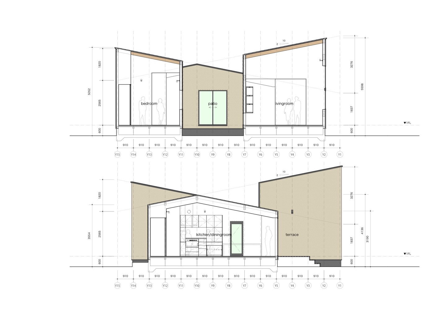 Kako bi se funkcionalnije organizovao prostor, planirano je da kuća od 155 kvadratnih metara bude organizovana samo na jednoj etaži i to rasporedu sekcija po sistemu „1+2+1+2+1“ – kao u Školici, piše ArchDaily.