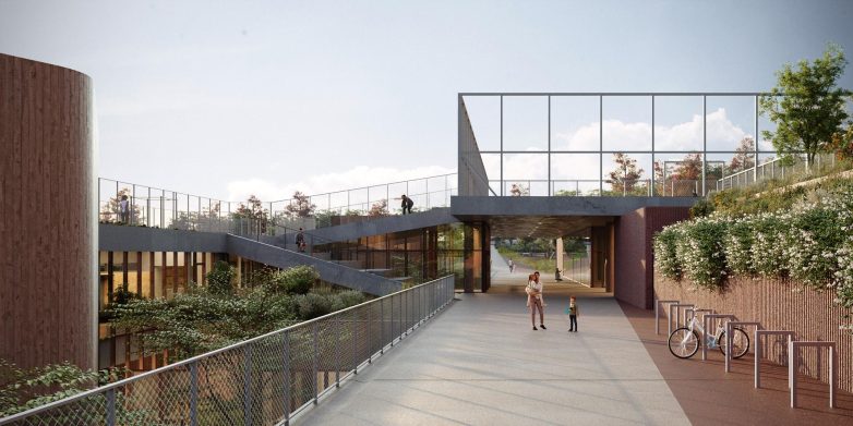 Elem, poznate arhitekte iz biroa 3LHD su osmislile dvoetažni volumen s učionicama, orijentisan na jug, koji je podzemno povezan s volumenom sportske dvorane.