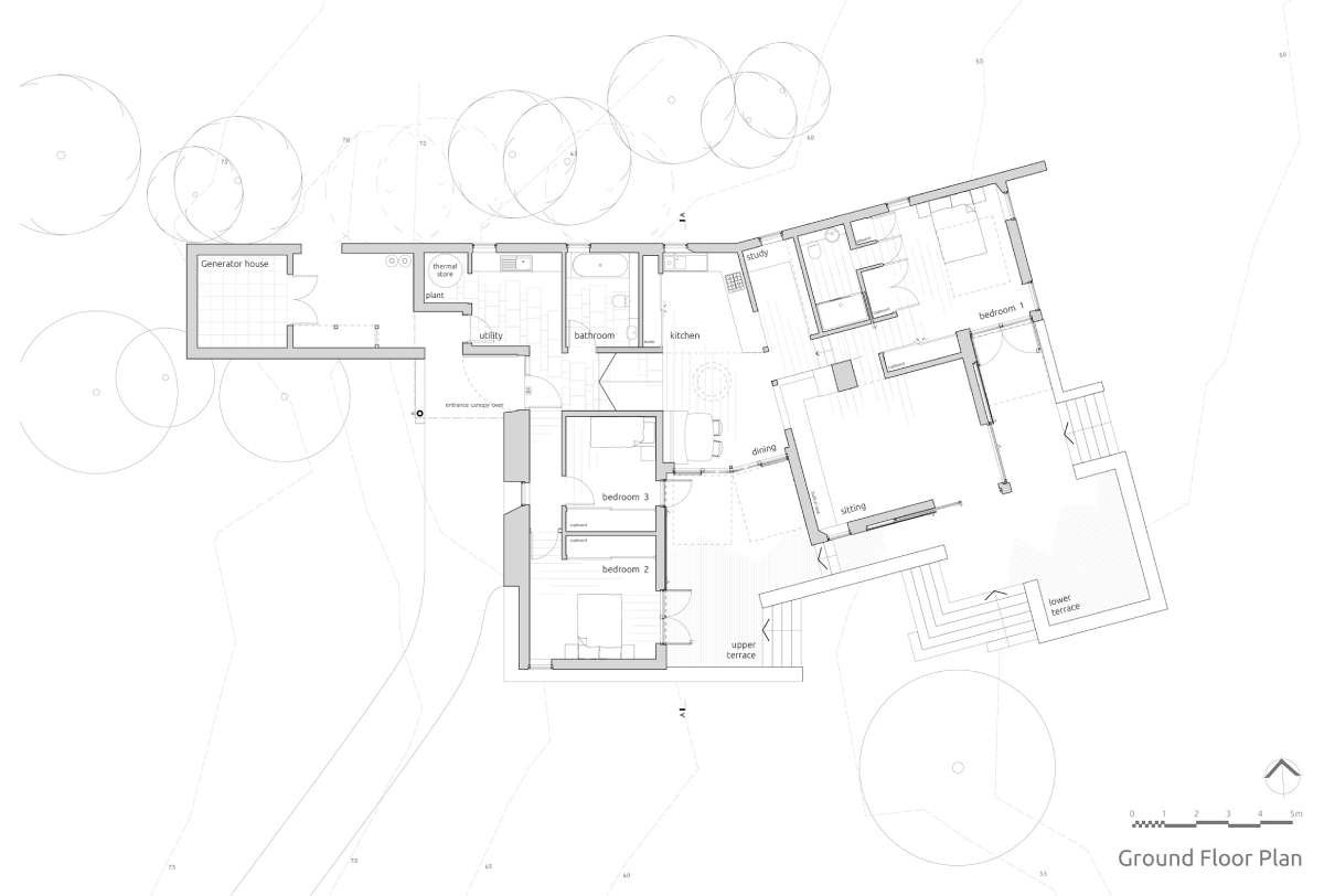 Celokupna struktura kuće sačinjena je od tri jedinice izgrađene u potpunosti od prirodnih materijala, tako da dopunjuju ambijent lokacije,.