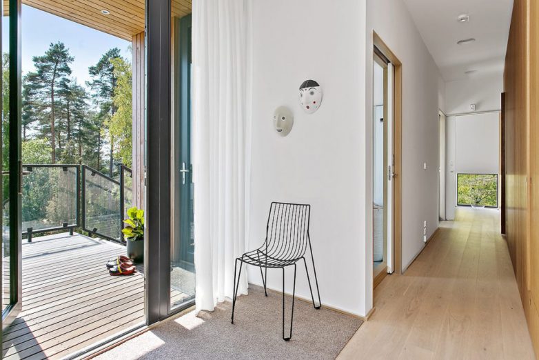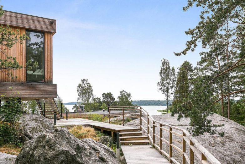 Kuća kubične forme u blizini Stokholma delo je arhitektonske firme Trigueiros Architects koja je ovaj objekat osmislila tako da izgleda kao da balansira na steni. Međutim, bezbednost njene konstrukcije nije uzdrmana kao što se to čini na prvi pogled jer je ona oslonjena na potporne stubove koji su pritom i omogućili da se iz unutrašnjosti stekne utisak da ona lebdi. Ovaj trik omogućio je i sjajan pogled ka prirodi koja je ispresecana brojnim vodenim površinama.