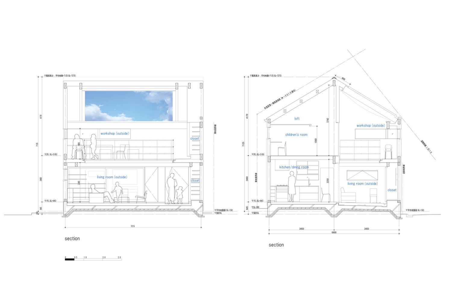 Cena zemljišta u Tokiju je izuzetno velika, a pritom postoji regulativa prema kojoj je po članu domaćinstva dozvoljeno izgraditi maksimalno 12 kvadrata, što znači da bi ova petočlana porodica mogla da ima kuću od maksimalno 60 kvadrata. Međutim, u Japanu se pod korisnom stambenom površinom računa samo prostor smešten ispod krova, što je ova petočlana porodica iskoristila na domišljat način..