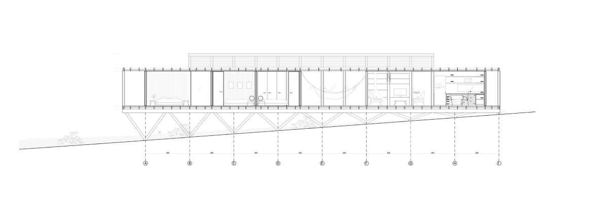 „Odlučeno je da čitav plan kuće bude organizovan na jednom nivou, uspostavljajući vezu sa horizontom, poput nekakvog doka.“ , istakle su arhitekte.