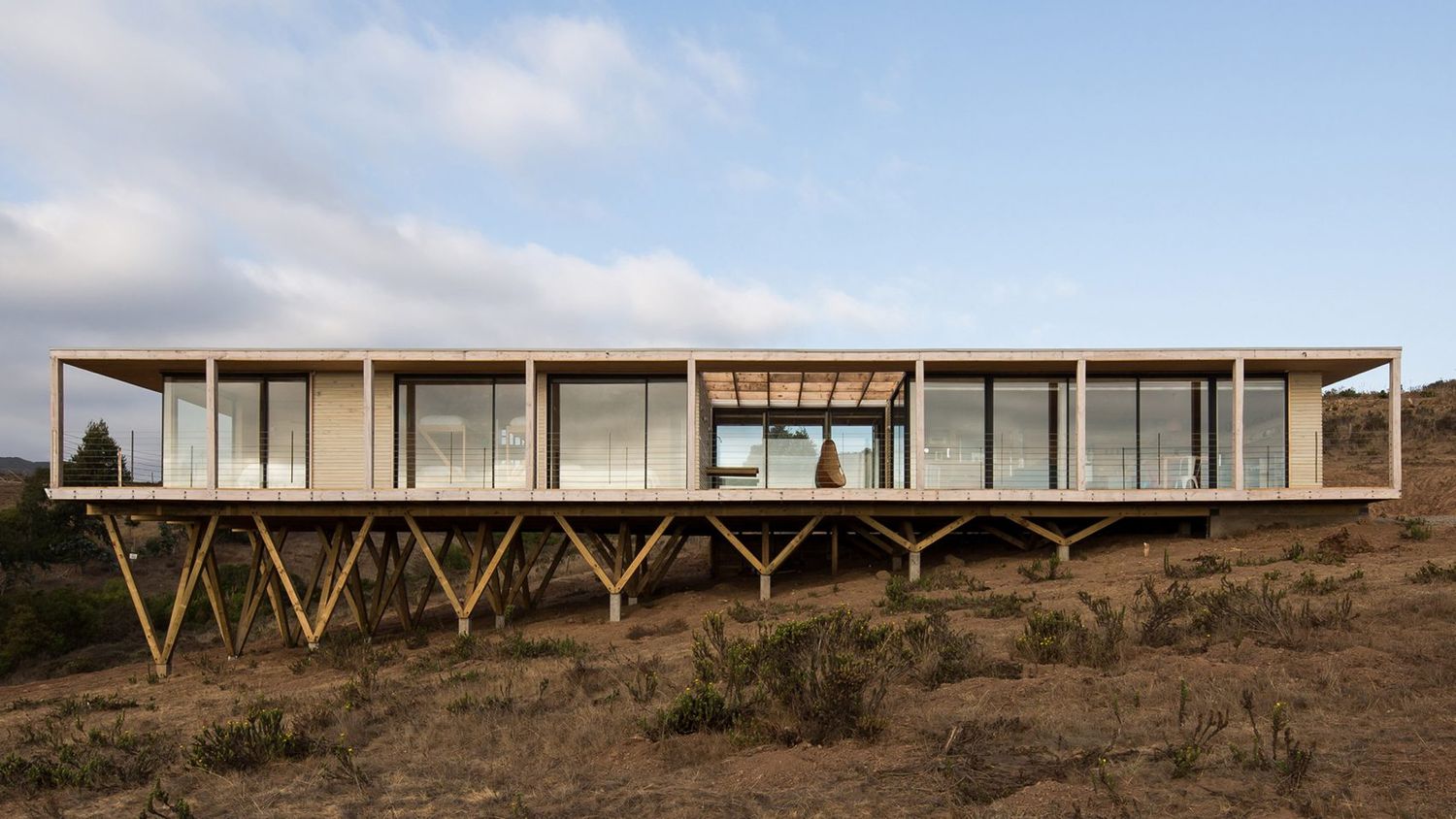 Na kosim štulama postavljena je konstrukcija kuće, sa namerom da se obezbedi neometan pogled na čileansku morsku obalu.