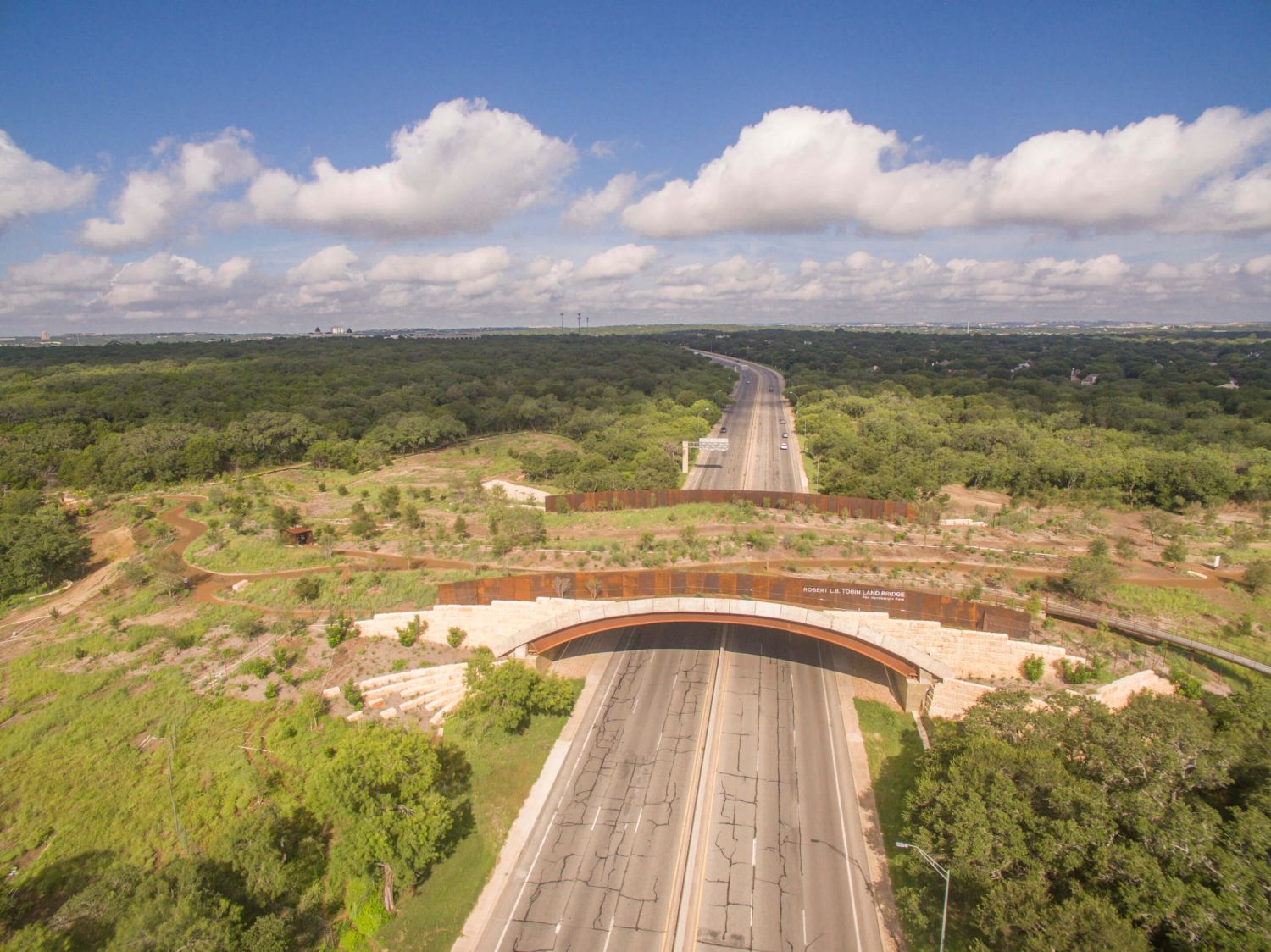 Prelaz u San Antoniju je širok koliko je i dugačak da bi oposumi, zečevi i jeleni mogli da pređu auto-put zajedno sa pešacima a da jedni drugim ne smetaju.
