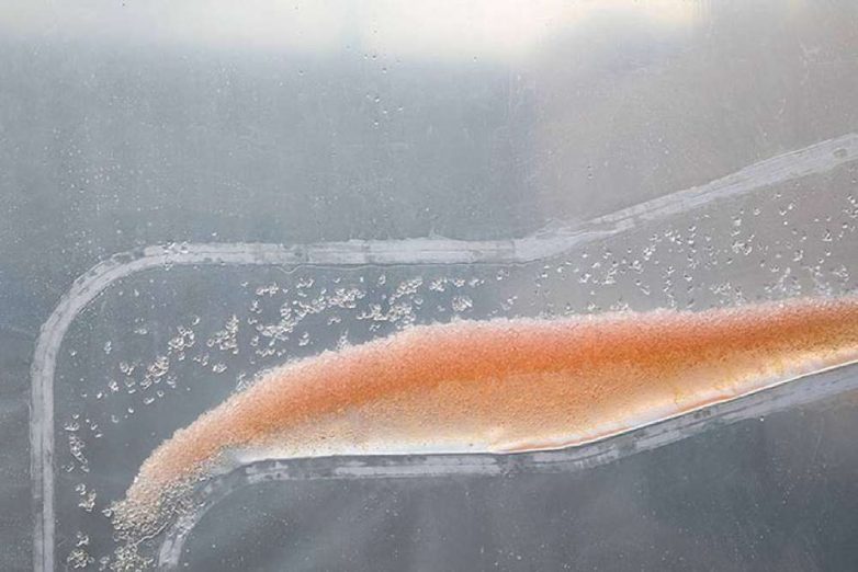 Zagađeni vazduh ulazi na dnu zavese, alge hvataju ugljen dioksid, a fotosinteza od njih pravi kiseonik koji izlazi na vrhu zastora.