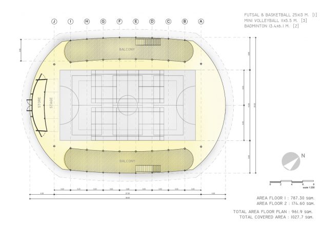 Sala od 782 kvadrata spremna je ugosti mečeve malog fudbala, košarke, odbojke kao i badmintona ali i performanse muzičara, glumaca ili mađioničara zahvaljujući pokretnoj bini. Iza bine nalaze se ostave u kojima se drže sportski rekviziti, oprema za muzičare, a ako trebi i šeširi i zečevi, dok su s obe strane terena organizovane tribine za ushićene roditelje, rodbinu i prijatelje.