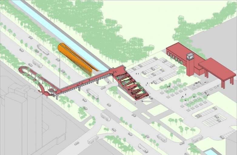 Oni su osmislili pasarelu preko autoputa na koju se penje preko ozelenjene rampe sa stepeništem i cikcak stazom za bicikliste i osobe sa invaliditetom.