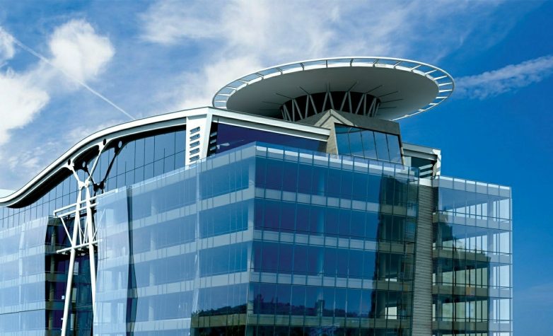 U pitanju su četiri šestospratna staklena kubusa, povezana sa tri prostrana atrijuma, fizički uvučena u odnosu na glavne segmente građevine. Ovaj ritam fasada na adekvatan način prati i peta, krovna fasada, sa svojom zatalasanom formom, krunisanom jednim smelim tehničkim rešenjem, još uvek jedinstvenim u Beogradu – kružnim poljem heliodroma.