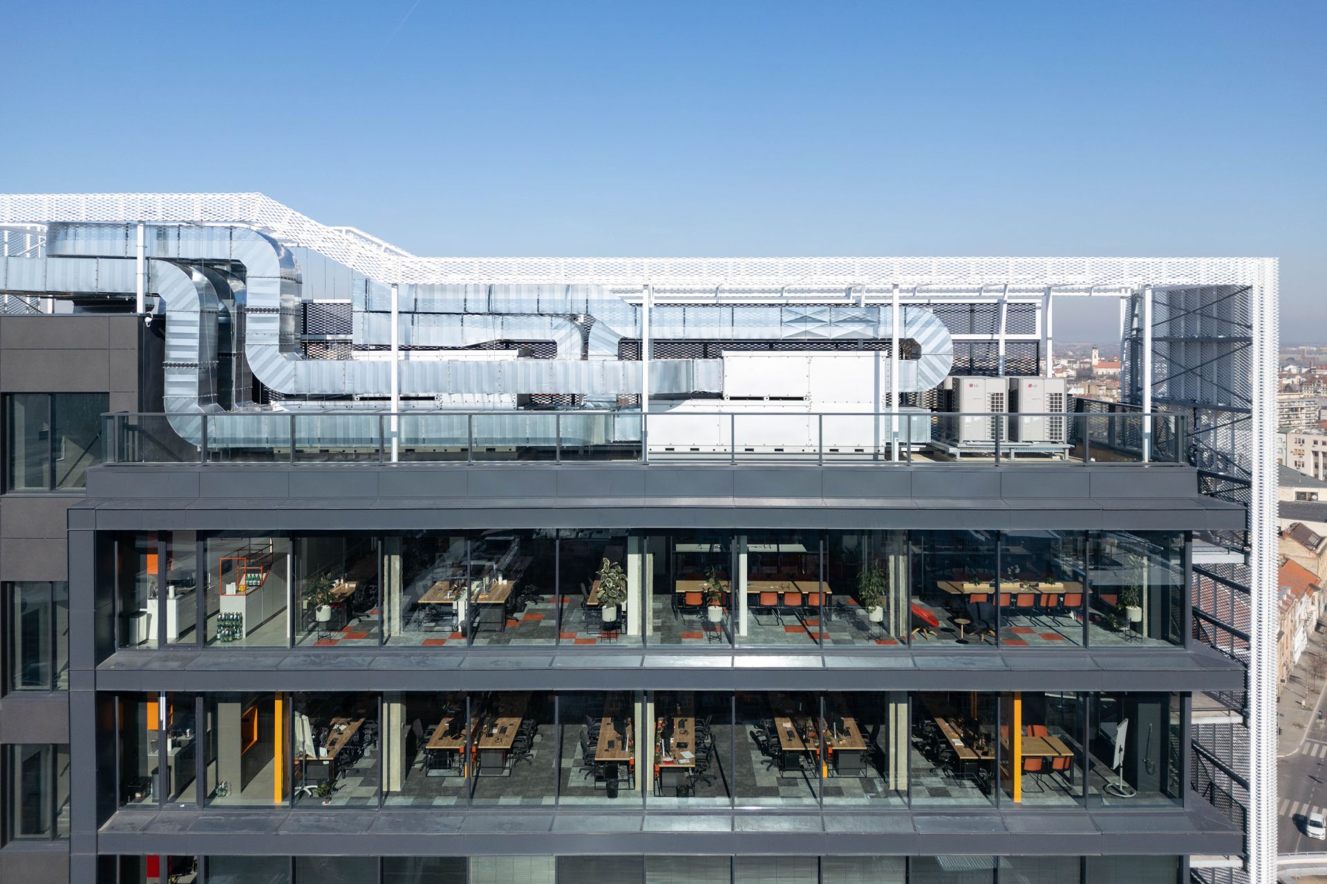„Istočna fasada ima jednu dodatnu karakteristiku: otpornost u požaru. Za ovu svrhu korišćen je sofisticirani Jansenov sistem čeličnih profila i specijalna protivpožarna stakla koja sprečavaju prenos požara između dva objekta“.