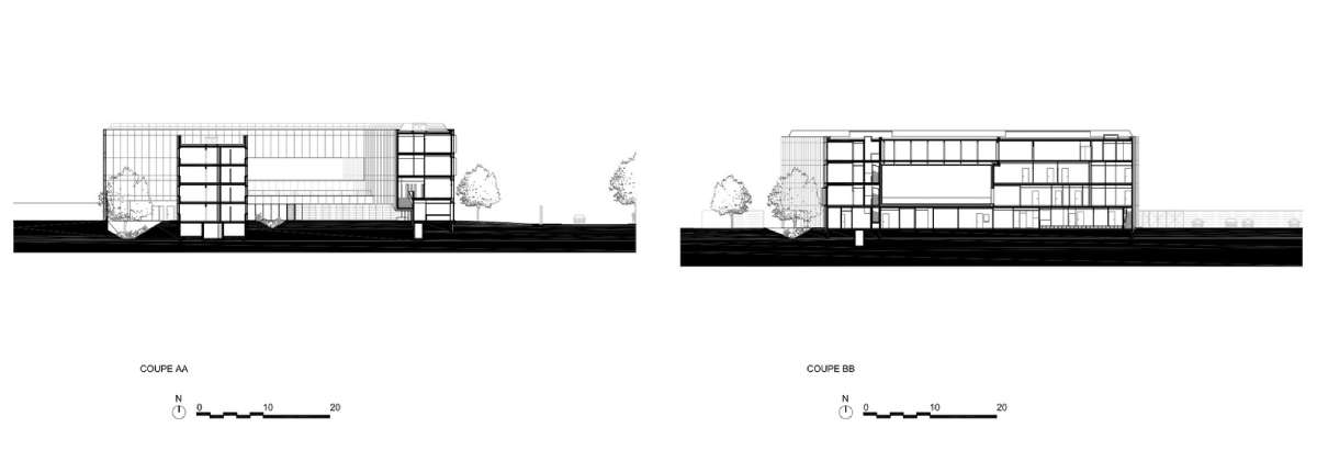 Neposredno uz ulaznu zonu nalazi se pristup prostorijama za kolektivne aktivnosti, kao i tehničkim prostorijama. Odavde takođe postoji veza ka administraciji i upravi, čije su prostorije organizovane na prizemlju i trećem spratu. Kancelarije su smeštene na uličnom frontu, te iz njih postoji pogled na bulevar Général Leclerc i ulicu Acacias.