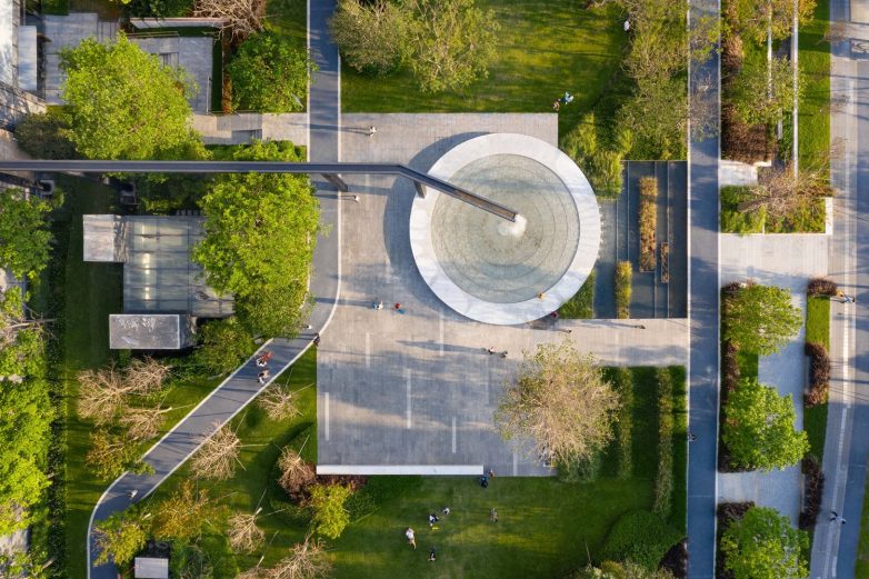 Na severu parka se nalazi metro stanica u koju je integrisan natkriven ulaz, taxi stajalište, privremeni parking za autobuse, stajalište za one koji čekaju na zeleno svetlo na pešačkom prelazu, hlad u krošnji drveća kao i parking za bicikle. Sve ove mere pomažu da pešaci lakše i jednostavnije koriste ovaj javni prostor.