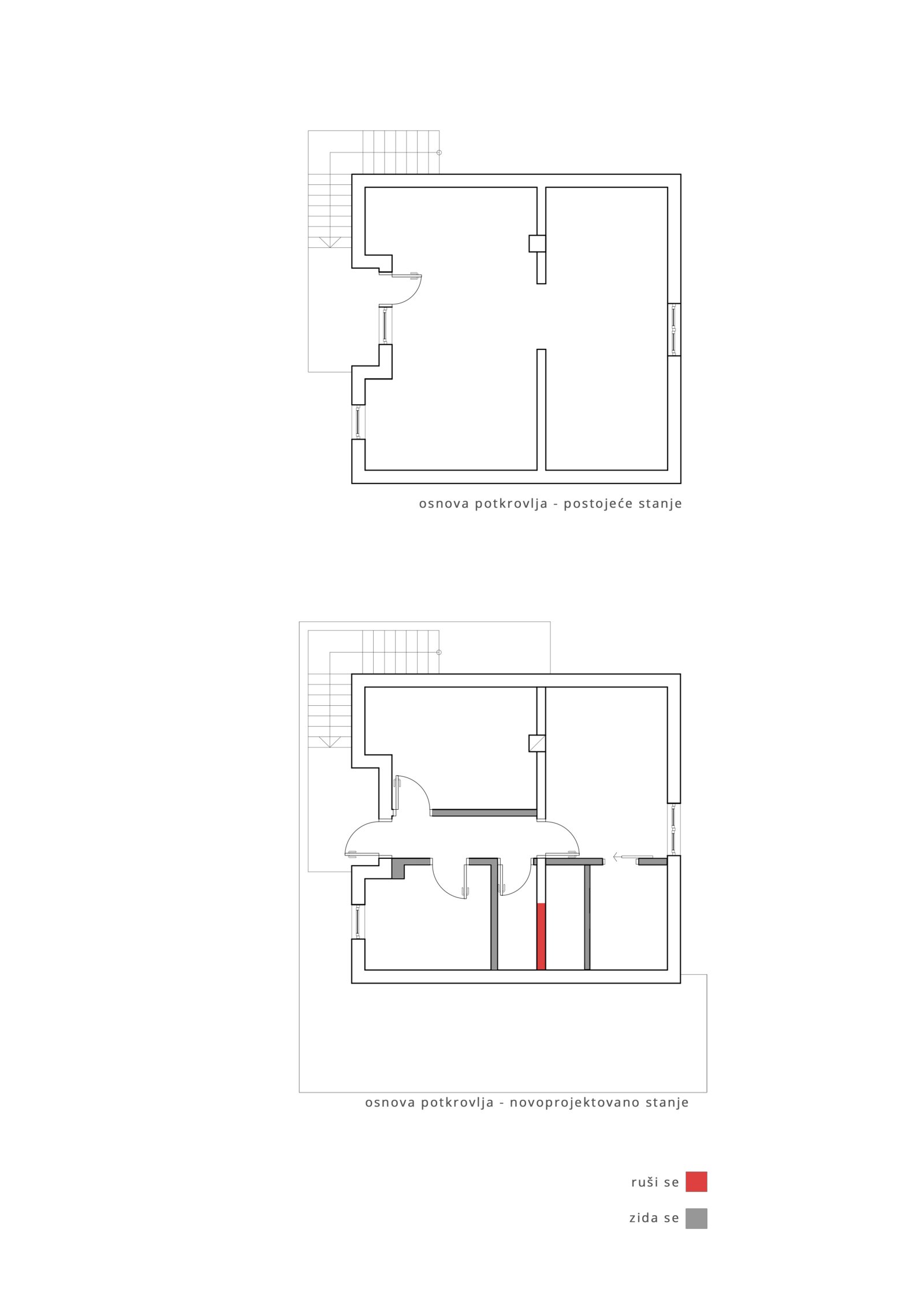 Postojeći objekat, iako konstruktivno očuvan, funkcionalno nije zadovoljavao potrebe klijenta, te ga je bilo neophodno adaptirati i dograditi. Pored zamene dotrajale krovne konstrukcije i proširenja objekta prema dvorištu, uređen je i parter na prilazu kući, kao i sa dvorišne strane.