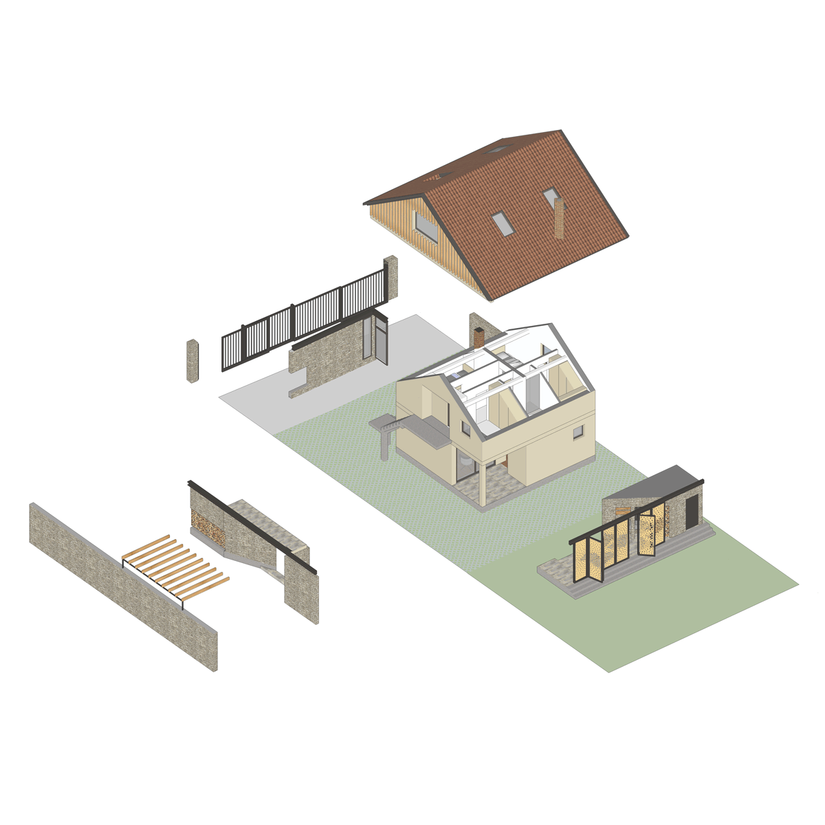 Prilaz objektu je sa severne strane, dok je sa južne strane postojeća kuća proširena terasom, koja predstavlja međuzonu između unutrašnjosti kuće i dvorišta.