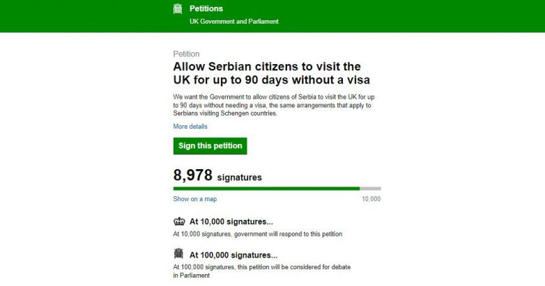 Naime, 10.000 potpisa je potrebno da bi britanska Vlada zvanično odgovorila na Peticiju, a 100.000 potpisa je potrebno da bi britanski Parlament o ovome raspravljao na sednici.
