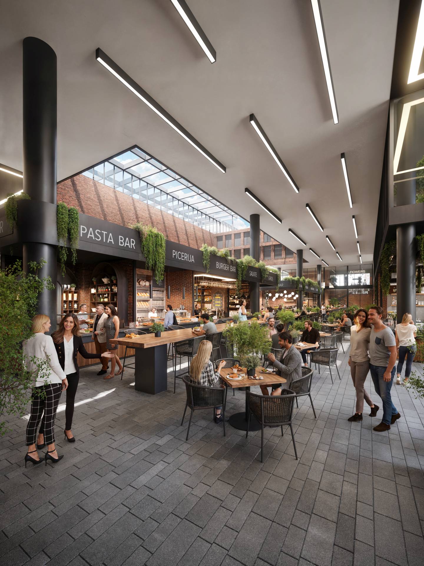 Iznad mnoštva tezgi, prodavnica, kafića i restorana, naći će se ozelenjena krovna terasa od 1.800 kvadrata.