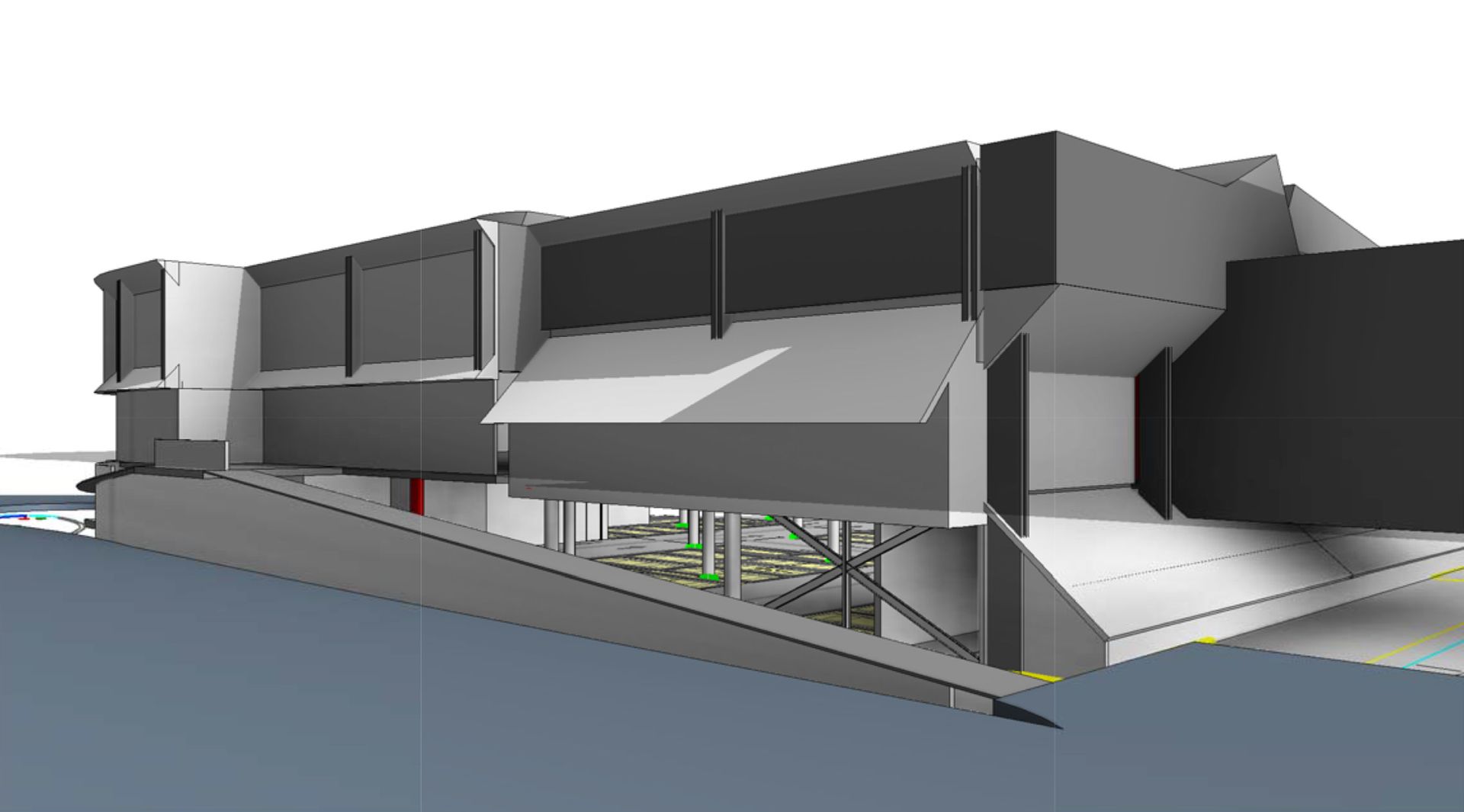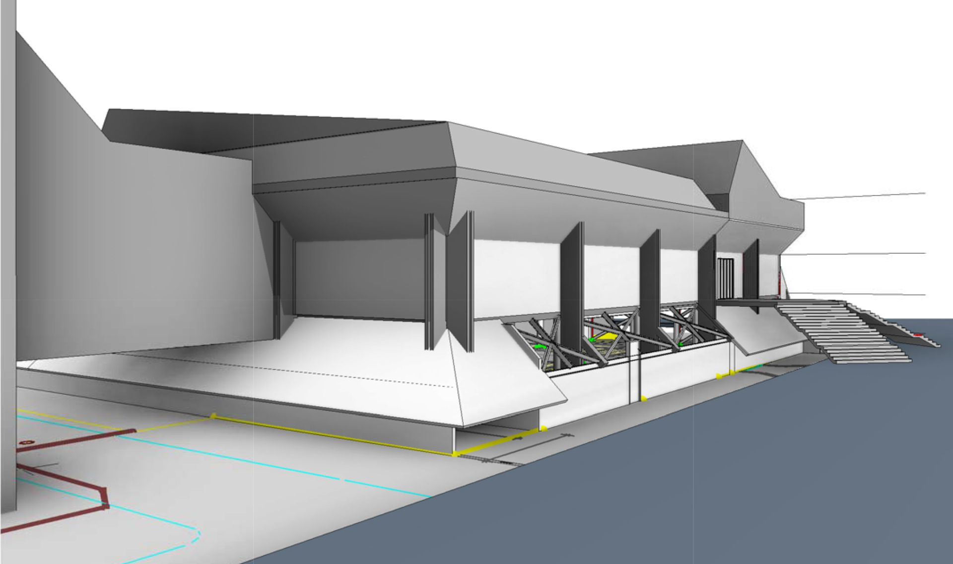 Kako bi se ostvarilo potrebnih minimum 1/3 otvora za potrebe otvorene garaže, predviđeno je rušenje dela spoljašnjih zidova na osi 2, između osa A i D sa istočne strane (strane ulaza), ka Ulici Palmira Toljatija, i na osi F, između osa 5 i 7 sa južne strane objekta ka Ulici Aleksinačkih rudara.