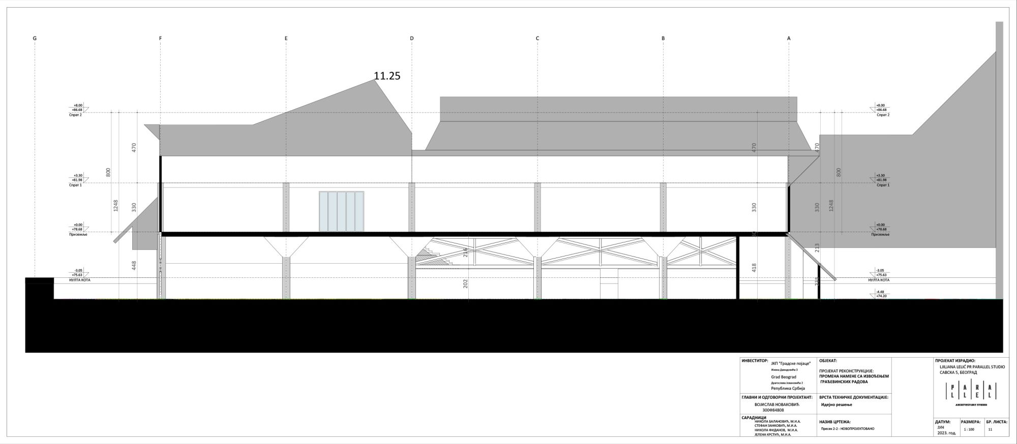 Projektom se planira promena namene dela objekta na nivou -1 uz rekonstrukciju fasadnih elemenata u skladu sa novom namenom.
