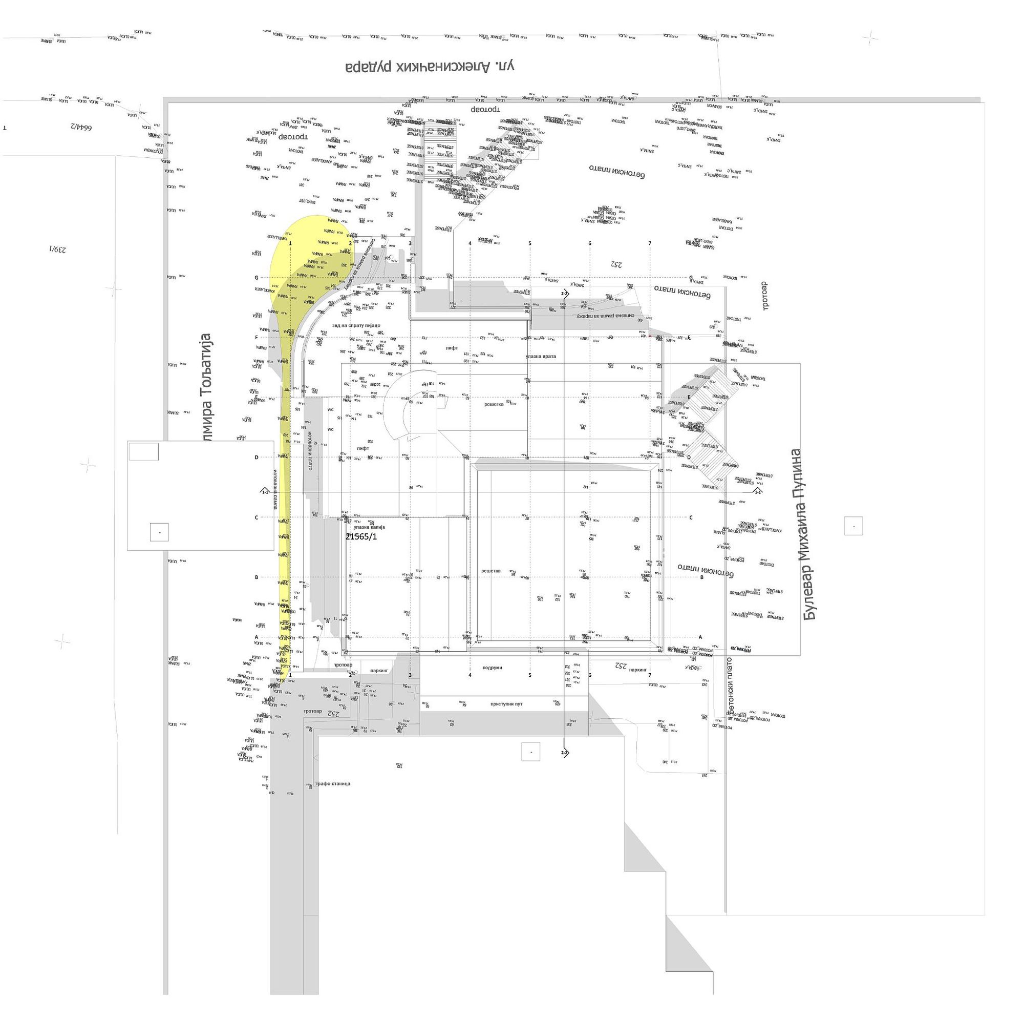 Deo podrumske etaže na kom se nalazi pešačka rampa i liftovi odvojen je od ostatka podrumske etaže na kom se nalazi garažni prostor.