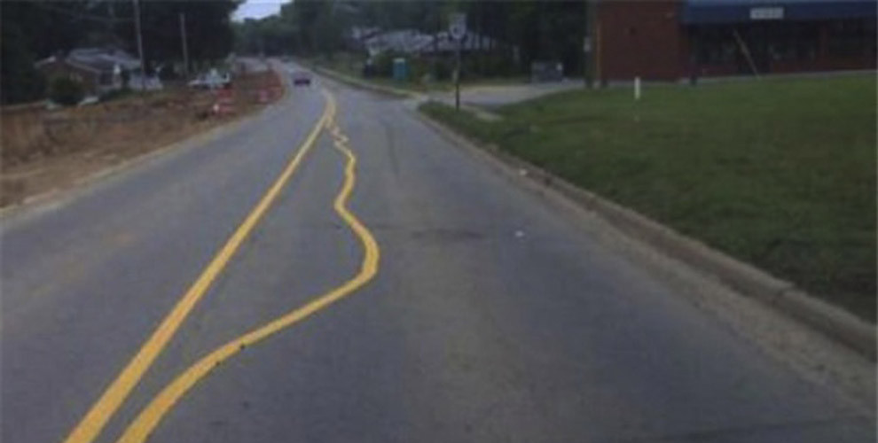 Ovu fotografiju napravio je nepoznati vozač na nepoznatoj lokaciji ali po svemu sudeći to nije trik u Photoshopu. Iako je jedna linija iscrtana tačno kako treba – po osi puta – druga je „malo“ pobegla. Ne možemo ni da predpostavimo kako se ovo moglo dogoditi a još nas više čudi što je ova deonica, očito, puštena u saobraćaj.