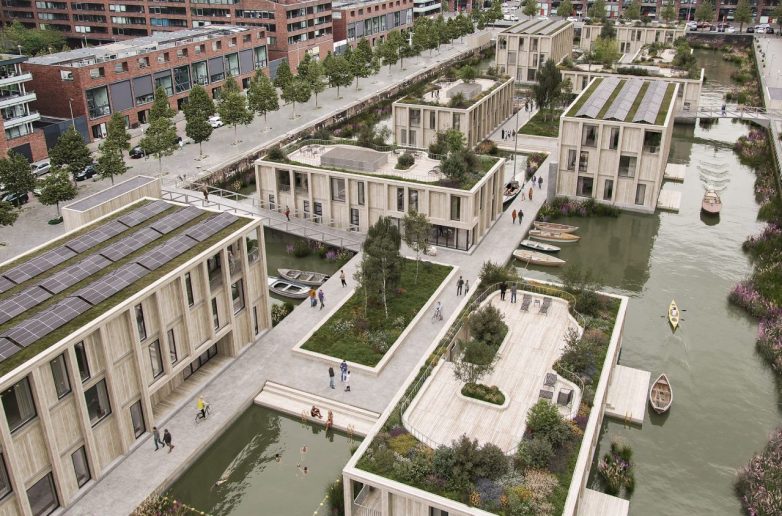 U pitanju je najveći plutajući stambeni kompleks u Evropi, projektovan od modularnih jedinica građenih od unakrsno lameliranog drveta (CLT), koje se izrađuju van lokacije i postavljaju direktno na vodu. No ono što ovaj projekat izdvaja nije samo njegova inovativna konstrukcija — već i činjenica da će oko njega biti formirane biljne formacije koje funkcionišu kao prirodni biofilteri, čisteći reku i stvarajući novo stanište za ptice, ribe i vodeni svet.
