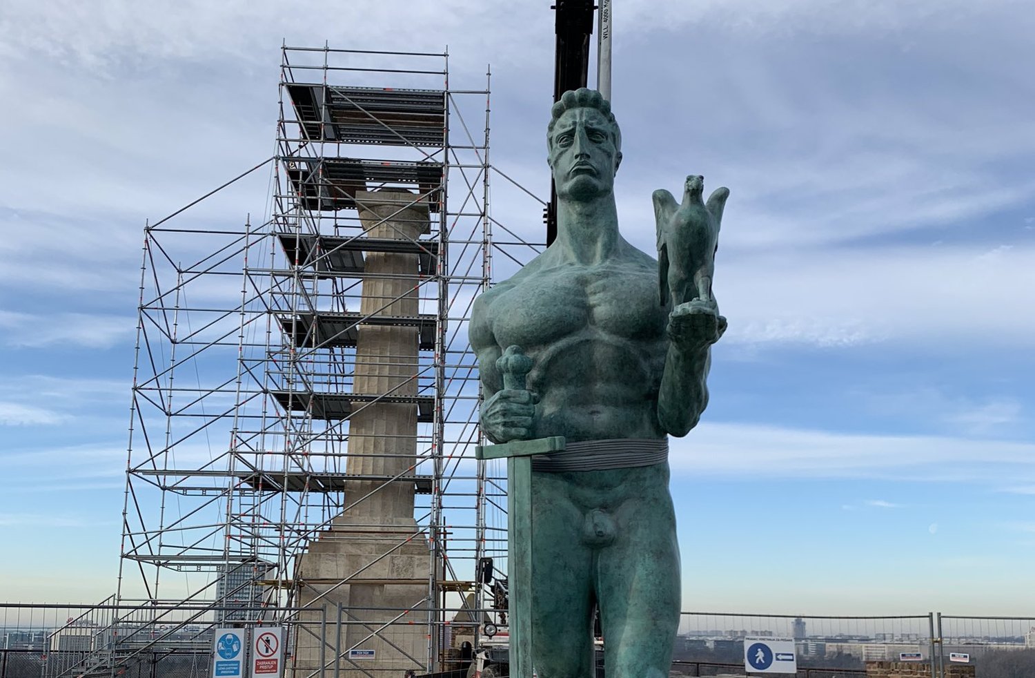 Uporedo sa restauracijom skulpture u ateljeu Kuzmanović, rađeni su i radovi na postamentu i stubu na Kalemegdanu.
