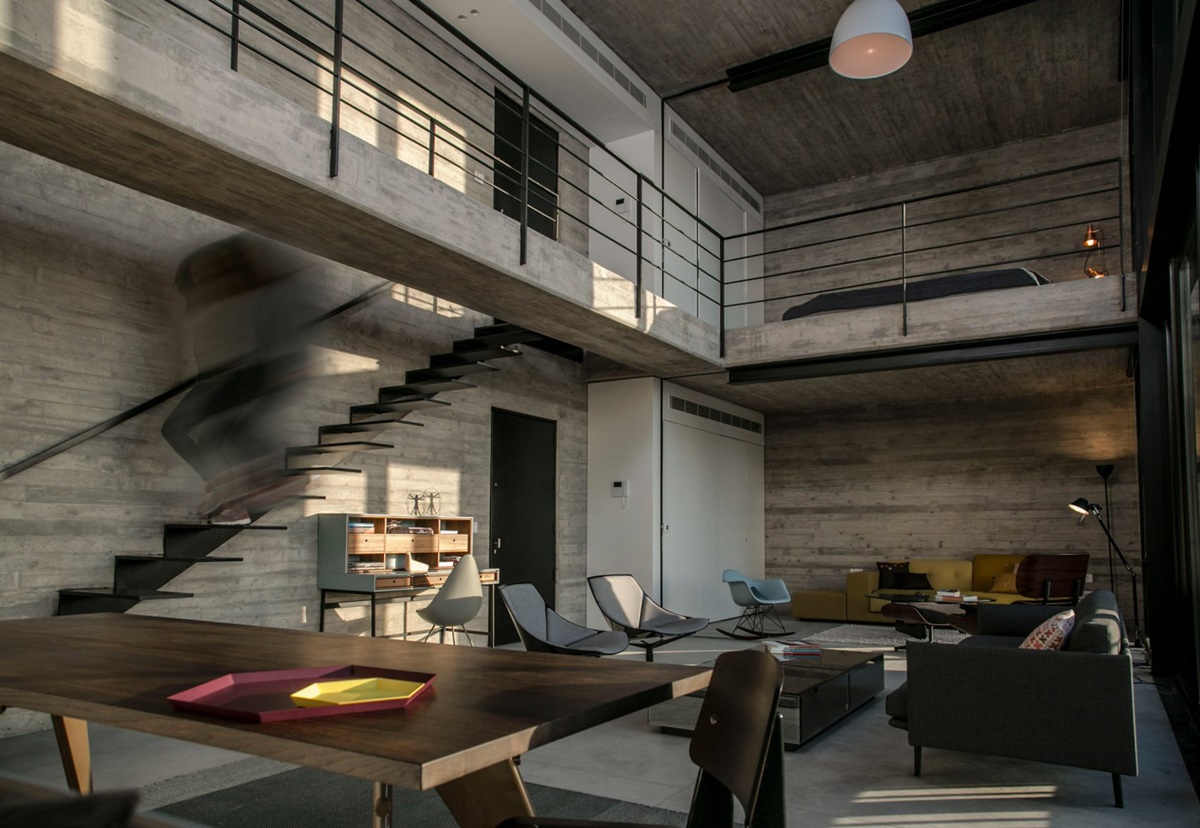Pomeranjem tih panela stvara se i dodatni međuprostor širok 80 centimetara i u njemu se nalaze ugradni ormari i dodatno stepenište koje spaja dva nivoa stana.