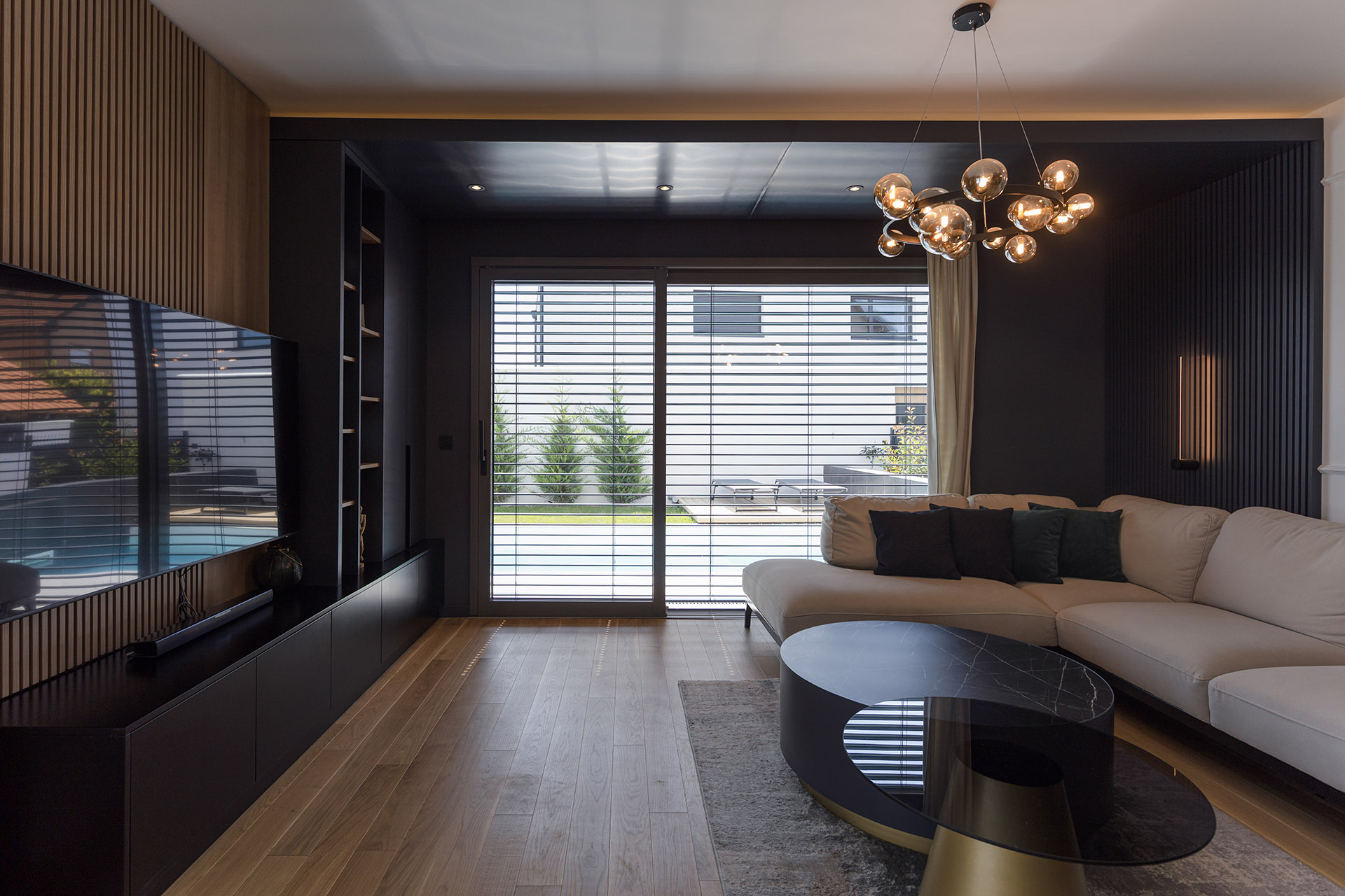 Enterijer je projektovan sa idejom da se dizajnom i estetikom podrži celokupna ideja o stvaranju duha jednoporodične kuće.