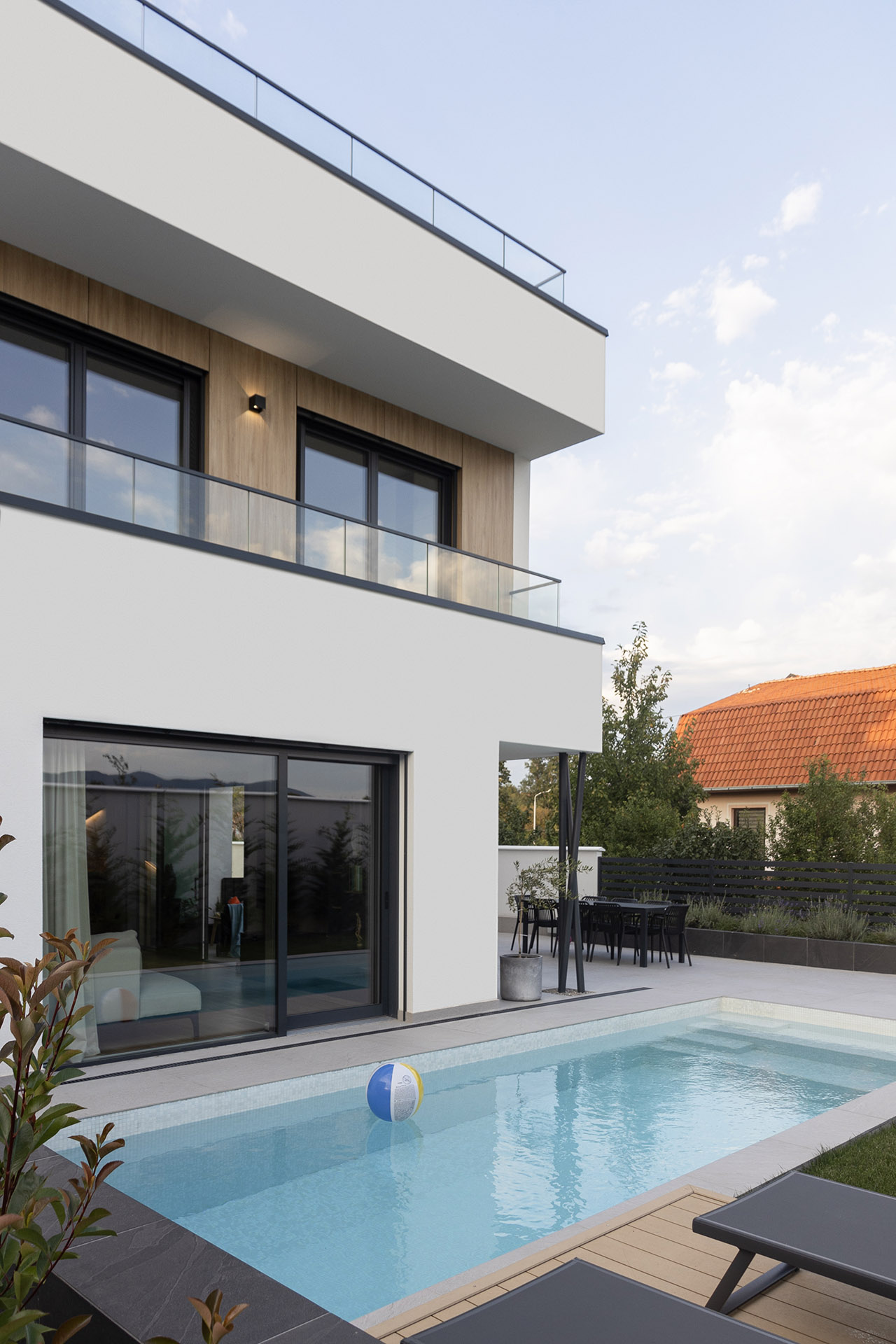 „Dosta smo pažnje posvetili pejzažnom uređenju i uređenju okućnice sa bazenom planirajući od samog starta projektovanja ravnopravno ovaj deo kao i planiranje samog objekta. Iz našeg iskustva kao korisnika kuće možemo reći da je tokom većeg dela godine dvorište prostor u kome provodimo najviše vremena i da je u tome ključna razlika i prednost kuće u odnosu na stan“ – kaže Aleksandar Đorđević, vlasnik i arhitekta kuće Kea u Nišu.