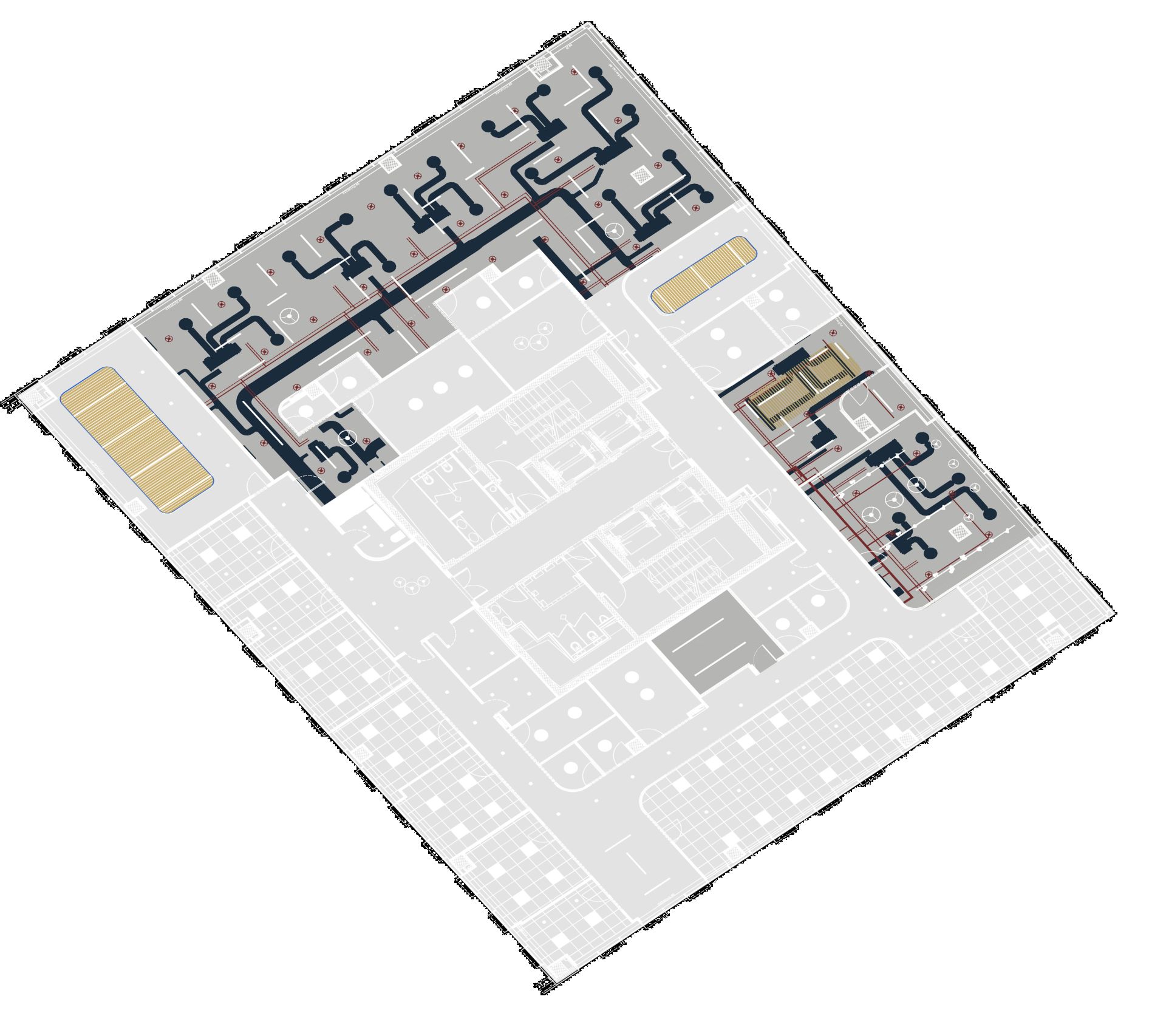 Tako su prostori za goste i klijente grupisani u istoj zoni – zoni reprezentacije, dok su kancelarije i interne sale za sastanke pozicionirane duž druge dve fasade objekta.