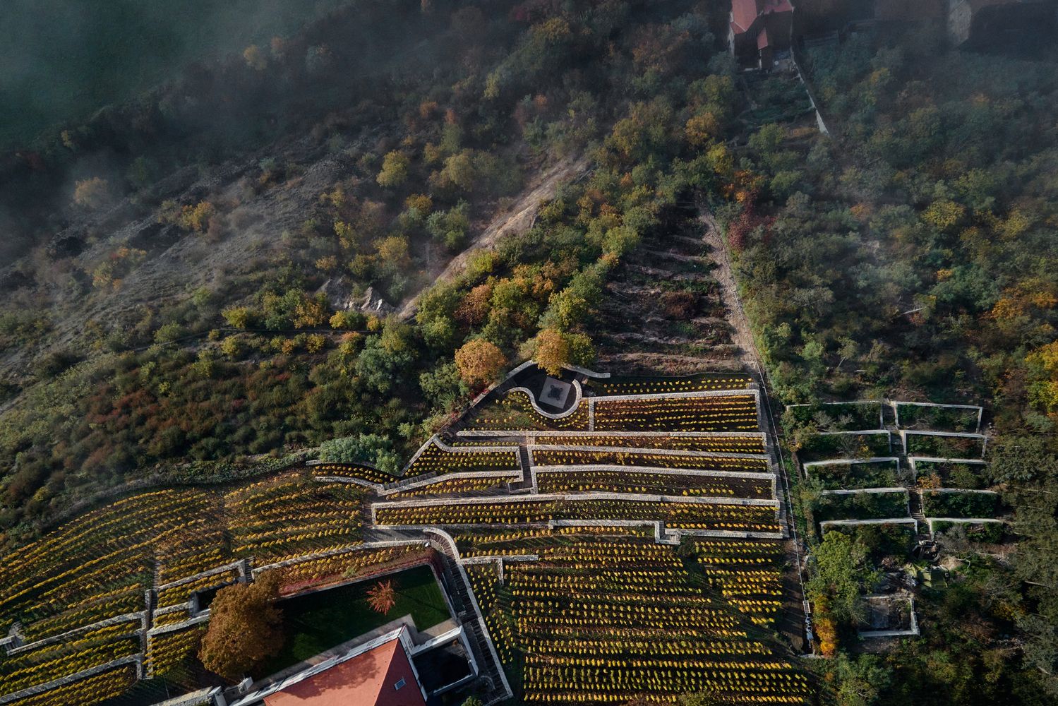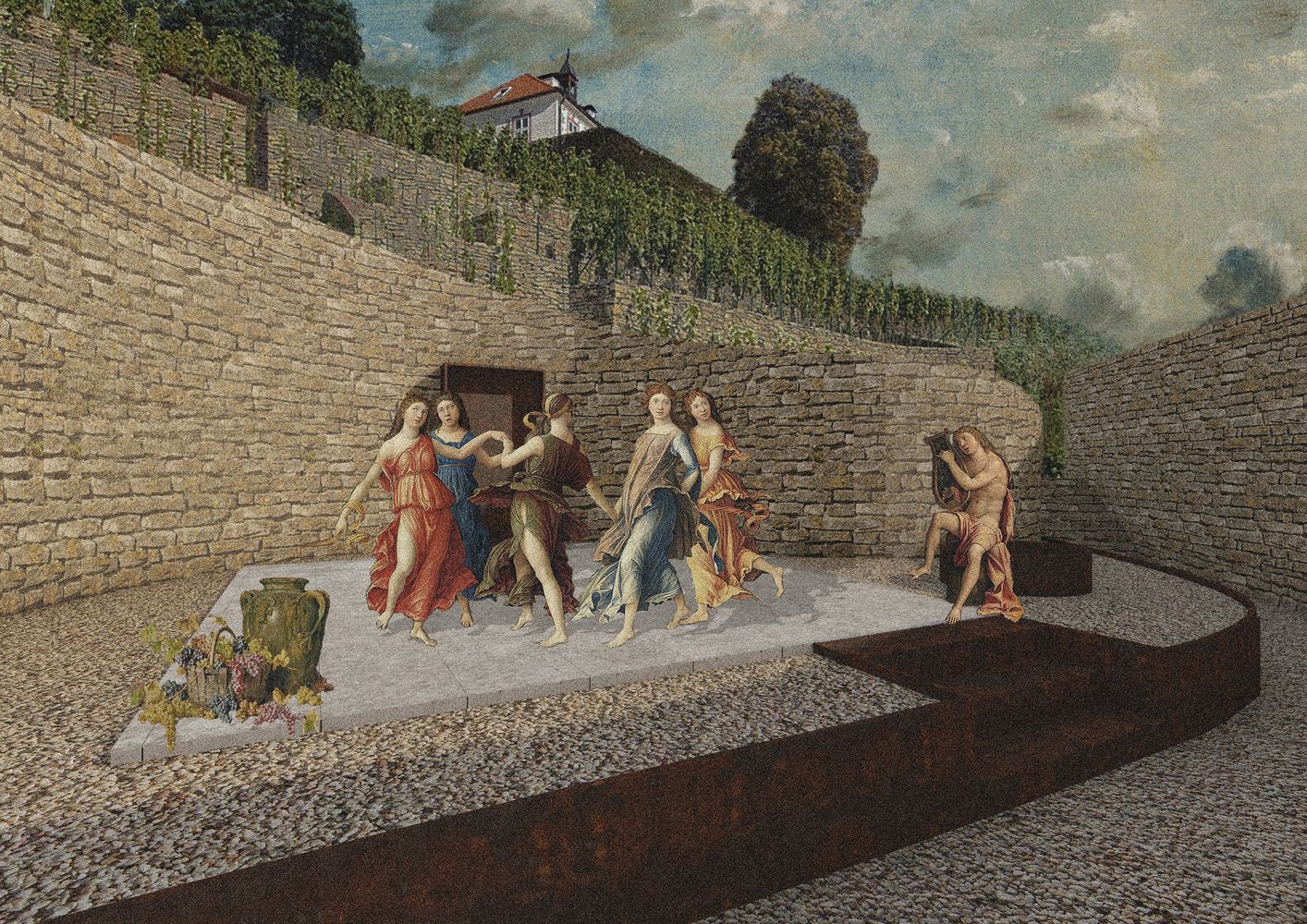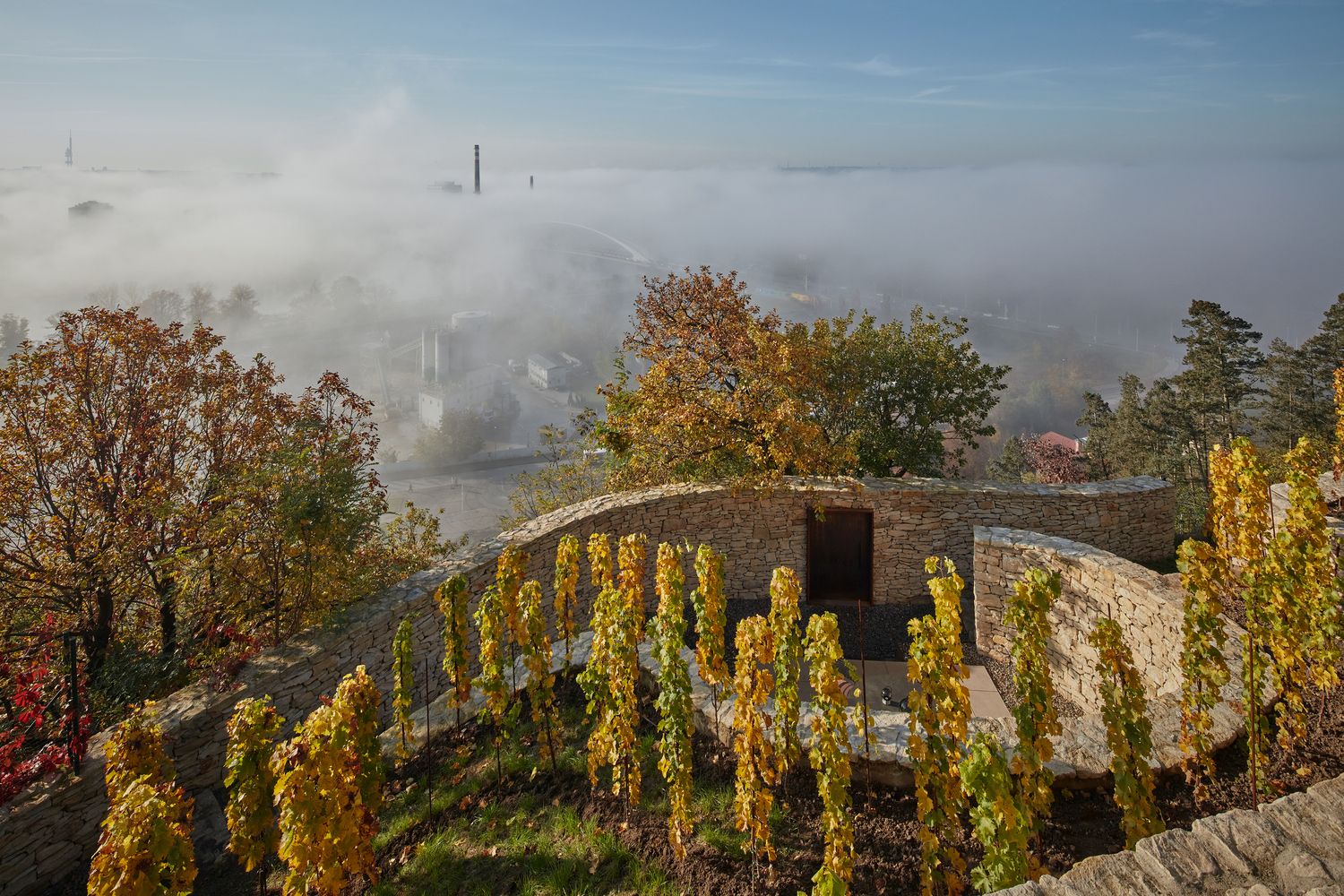 Usred talasastih vinograda, otkrivena kamena ruševina sa zakrivljenim prostorom bila je suptilno integrisana sa pejzažom, te je postala osnova intervencije.