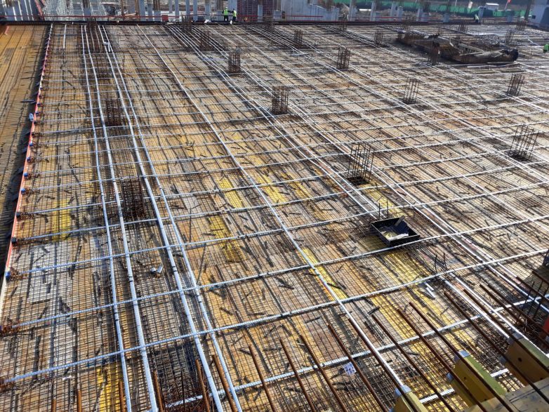 Ploča je direktno oslonjena na stubove i posebnim konstruktivnim merama je obezbeđeno da ne dođe do proboja stuba kroz ploču. Ploče su izvođene u dva takta i na taj način je omogućena maksimalna paralelizacija procesa izgradnje.