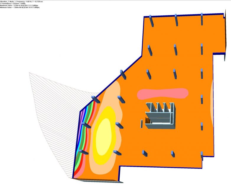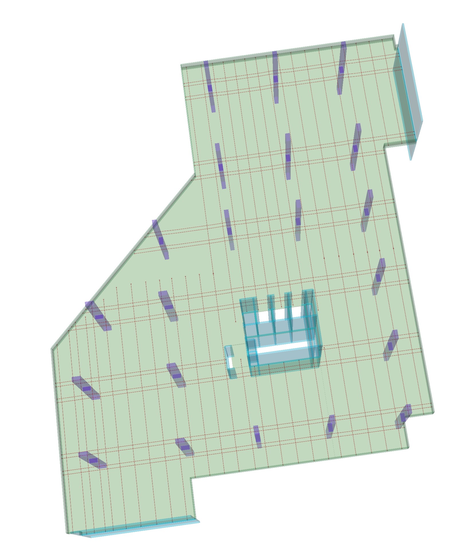 Rasponi na tipskoj tavanici su od 8 do 10 metara, debljina ploče je 24 cm i izvedena je od betona klase C30/37. Po obodu objekta su terase sa dužinom konzole od 3,5 m.