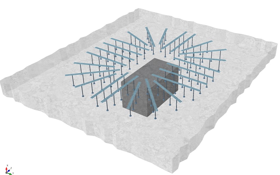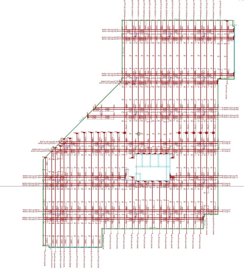 Za potrebe izgradnje ovog objekta, prvog od tri planirana, sa ukupnom bruto površinom od 13.814,00 m2 raspoređenih na 8 nezavisnih etaža, Freyssinet je upotrebio tzv. “unbonded“ sistem prednaprezanja sa „slobodnovođenim“ kablovima.