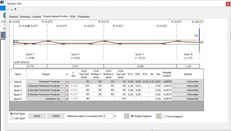 Kao glavne komponente sistema korišćena su nisko relaksirajuća užad prečnika 15,7 mm (150 mm2) i klase 1860 MPa, prema standardu EN 10138-3-Y1860 i odgovarajuće ankerne kotve iz Freyssinetove gamma F palete proizvoda.