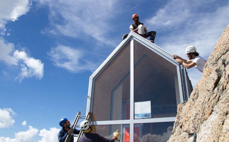 Kućica od drveta i čelika napravljena je u fabrici, a potom je dovežena helikopterom na lice mesta gde je i montirana.