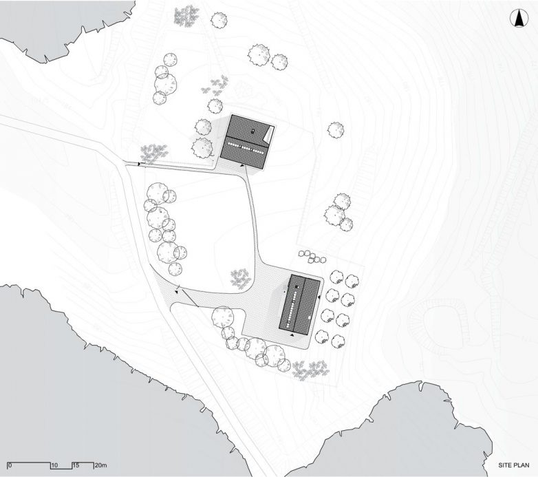 Objekti odišu smirenom arhitekturom, gde je glavni volumen integrisan u brdo i delimično ukopan u njega.