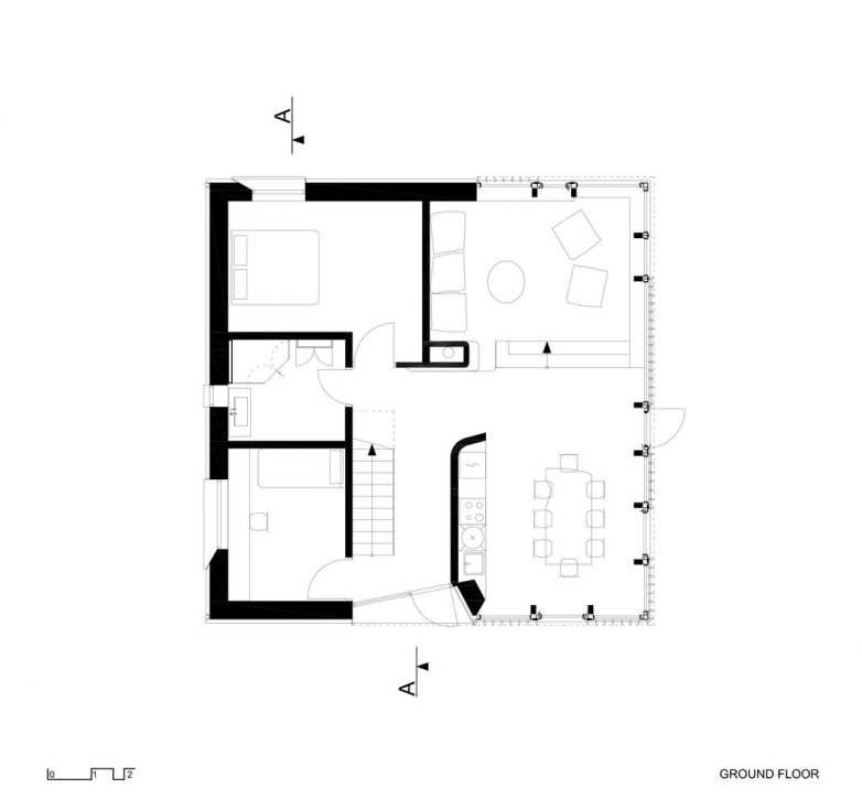 Konstrukcija je od borovine, izolacija je od drvene vune, a fasada je od kedra.