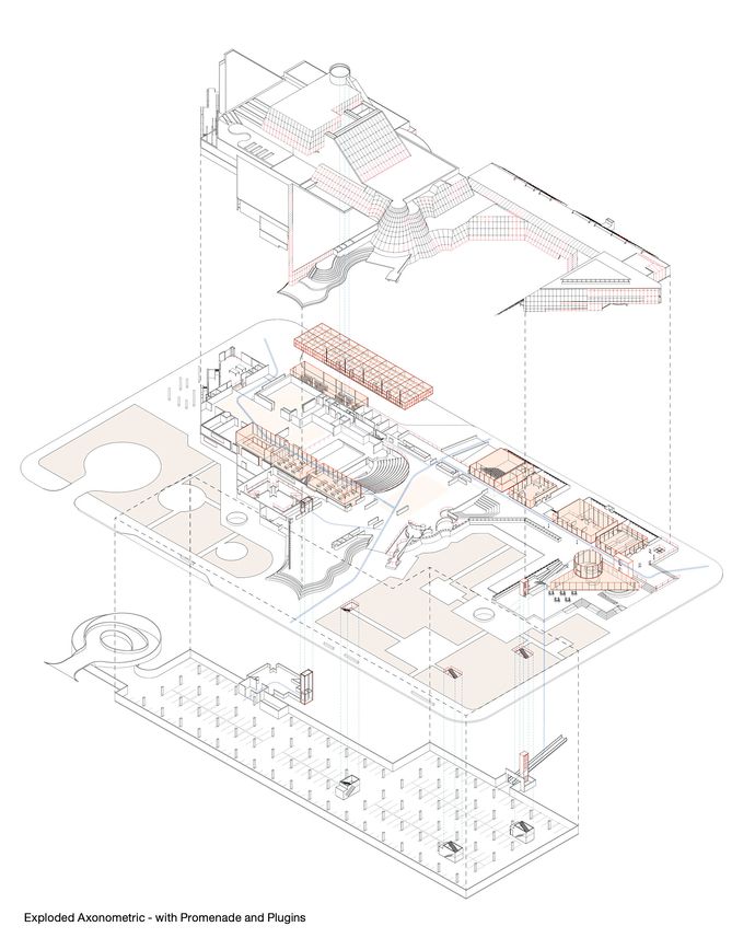 Novo predlog podrazumeva transformaciju Doma revolucije u javni prostor koji u potpunosti iskorišćava postojeću strukturu – od koje je napravljena samo konstrukcija, navodi se na sajtu SADAR+VUGA.