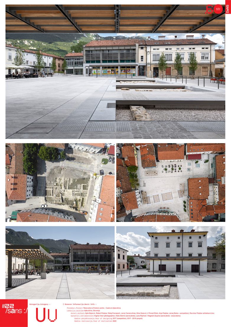 Renoviranje istorijskog centra – Kastra u Ajdovščini / Ajdin Bajrović, Robert Potokar, Matej Fornazarič, Javier Carrera Arias, Mina Gutović, Konkursni tim // Competition team (2017): Robert Potokar, Ajdin Bajrović, Matej Fornazarič,Primož Žitnik, Javier Carrera Arias, Anja Patekar, Jernej Borko