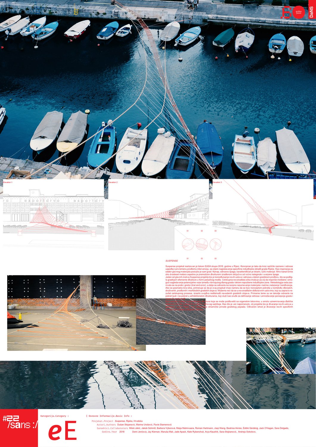 Projekat na interesantan način istražuje temu međuodnosa u gradskom tkivu, kroz dinamiku I promenjivost. Konstruisanjem neobične strukture mosta uz neočekivano korišćenje banalnog materijala ispituju se i mogućnosti samog materijala čime se prepoznaje višeznačni kvalitet ovog eksperimenta.