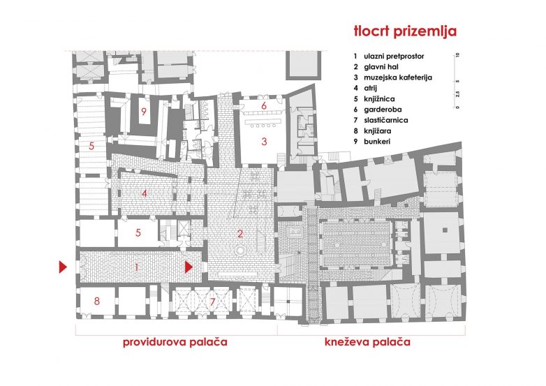 Projekat Providurove palače i čitavog kompleksa Dvije palače simbioza je savremene arhitektonske infrastrukture s istorijskim slojevima zatečenim in-situ.