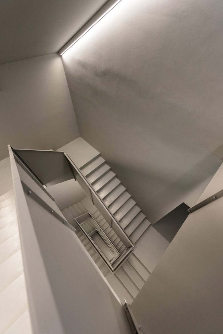 Ekstenzije tog čeličnog konstrukta su velika bela stepeništa koja prolaze kroz prostor atrijuma i poput antena se spuštaju na tlo, nežno dodirujući kameni pod na koji se ne smeju osloniti.