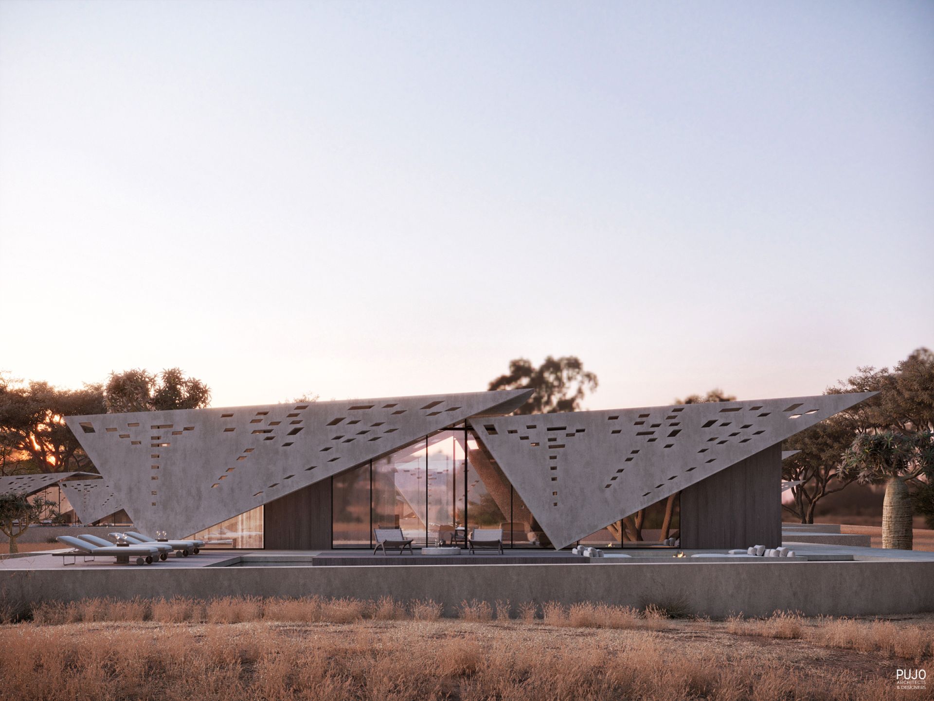 Živopisni pejzaž obale reke Zambezi poslužio je arhitektama biroa Pujo Architects & Designers za stvaranje specifične savremene arhitekture koja u prirodno okruženje uvodi savremene materijale, dok istovremeno omogućava potpuni užitak boravka na obali.