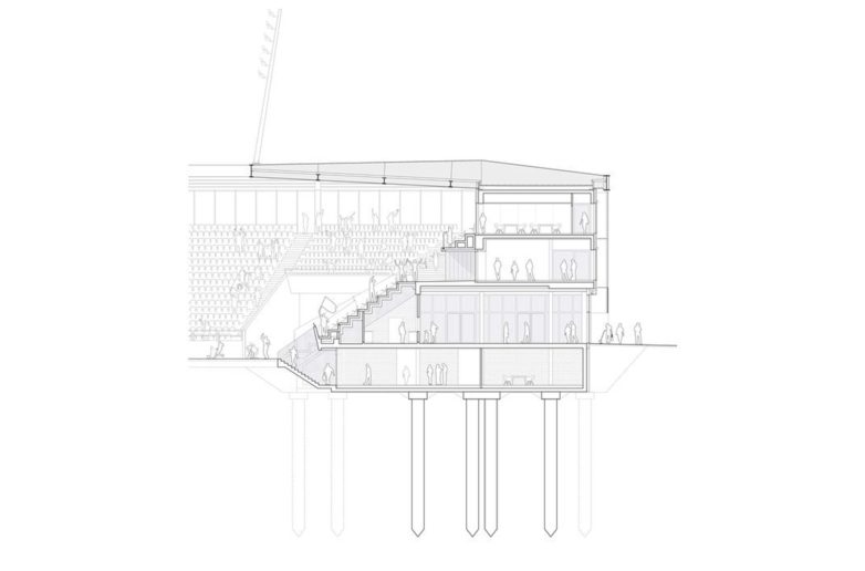 Stadion svojom pojavnošću i odličnim odabirom kolorita materijalizacije kroz fasadne vertikalni ravni i horizontalne partere se savršeno uklapa u sivilo grada.