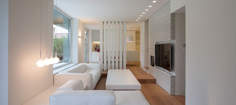 Po projektu arhitekte Andrea Trebbia, realizovan je enterijer kuće u Toskani u kojoj uglavnom preovlađuje bela boja koja je u kontastu s hrastovim brodskim podom. Kuća je lišena detalja ali zato rasveta upotpunjuje ambijent! U dnevnoj sobi postavljene su četiri Artemidine visilice Castore Sospensione.