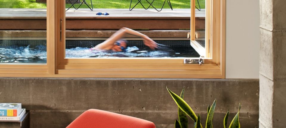 Razigrana kuća pored jezera s neobičnim bazenom