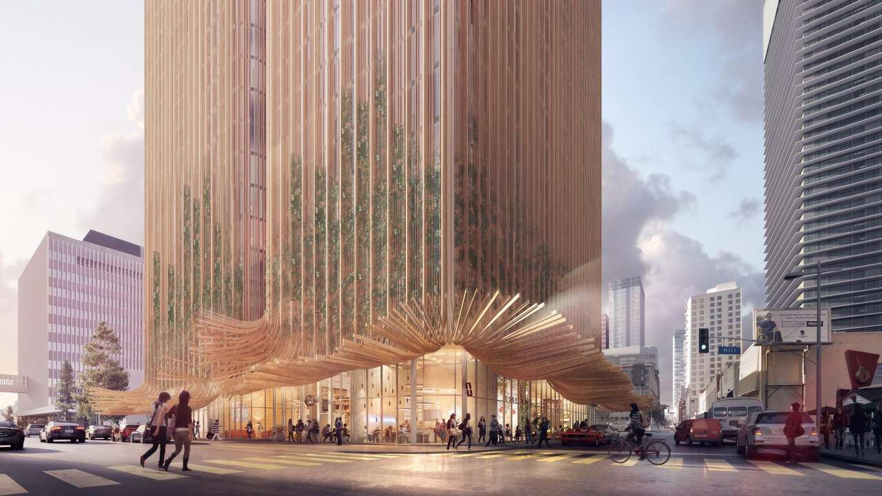 Njegova stambena zgrada u Los Anđelesu inspirisana je gigantskim stablom kalifornijskog crvenog drveta, a baza objekta u zoni fasade je izvedena tako da asocira na čuveno podizanje suknje Merlin Monro.