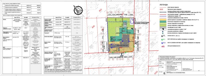 Ukupna BGRP nadzemno iznosi 946 m², od čega 11 m² otpada na trafo-stanicu koja nije predmet intervencije, dok se podzemna ukupna BGRP od 532 m² odnosi samo na rekonstruisan i dograđen objekat.